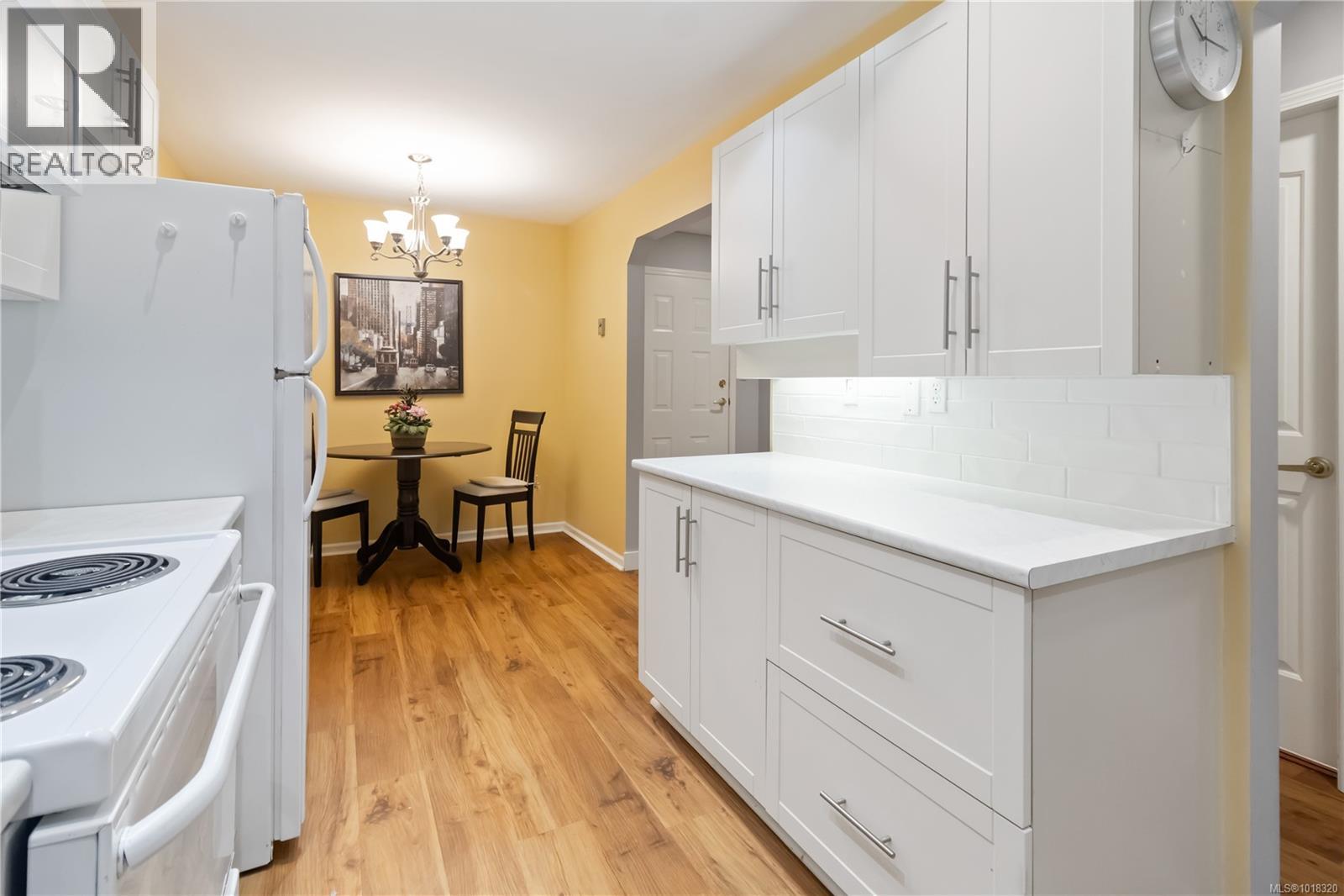 $440 MonthlyWelcome to the perfect Sidney lifestyle! Blocks from beautiful Beacon Avenue and the oceanside walkway, this updated and spacious two-bedroom condo is ideal for retirees seeking comfort, convenience, and community. Enjoy peace of mind in a quiet 55+ pet-friendly (1 dog or cat up to 30 lbs) and non-smoking building. Inside, you’ll find modern upgrades throughout, including luxury engineered vinyl flooring, refreshed kitchen with new cabinet doors, counters, tile backsplash, sink, hardware, and high-end microwave, plus an updated bathroom with new vanity, sink, tap, and flooring. The large primary bedroom easily accommodates full-size furniture, while the second bedroom is perfect for guests or a home office. Enjoy your east-facing deck with lovely morning light and a view of a mature tree that changes with the seasons. Everything you need is nearby-the library, excellent bus routes, boutiques, cafés, bookshops—all part of the warm, walkable seaside community that makes Sidney special. (id:35114)