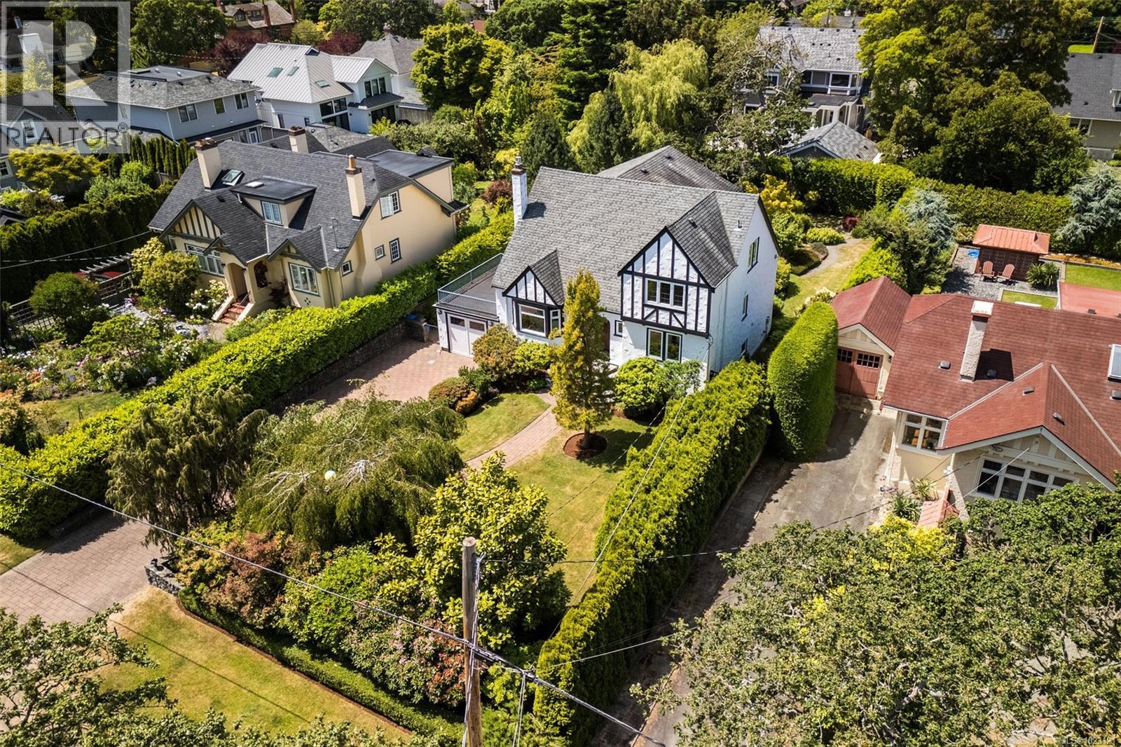 We are pleased to present this beautifully renovated 1930s character home, situated on a private, fully manicured, west-facing lot in South Oak Bay. Originally built in 1936, this timeless residence offers period details that evoke an era of genuine craftsmanship. The main level features wood floors, coved ceilings, French doors, a gas fireplace and updated windows that let in light from every angle. The masterfully renovated open-concept kitchen is the perfect setting for dinner parties and family gatherings and flows seamlessly to the sunny back deck with a wisteria-wrapped arbour. The flexible, spacious layout offers 3 bedrooms on the upper level, each with its own walk-in closet, a stunning ensuite with a soaker tub overlooking the gardens, and a main-level bedroom and full bath. The fully finished 1-bedroom, 1-bathroom walk-out basement, plumbed for a suite, is a rare find. Thoughtful updates offer peace of mind, including updated plumbing, electrical, gas-fired hot water and boiler heating system. The lush lot measures 67.5 x 172 Ft and is an established oasis of mature trees and vibrant blooms that would take decades to recreate. Immerse yourself in nature at Anderson Hill Park, Gonzales Hill and McNeil Bay or connect with the community in Oak Bay Village, Windsor Pavilion, Oak Bay Marina and Victoria Golf Course. There's no shortage of things to do and see within walking distance of this coveted location. This home and property truly epitomize the essence of Oak Bay living. (id:35114)